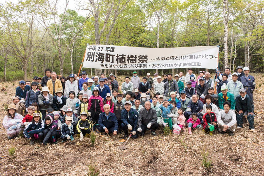 「大気と森と川と海はひとつ」をスローガンに、魚をはぐくむ森づくり事業・おさかな殖やす植樹運動として植樹祭は開催されています。